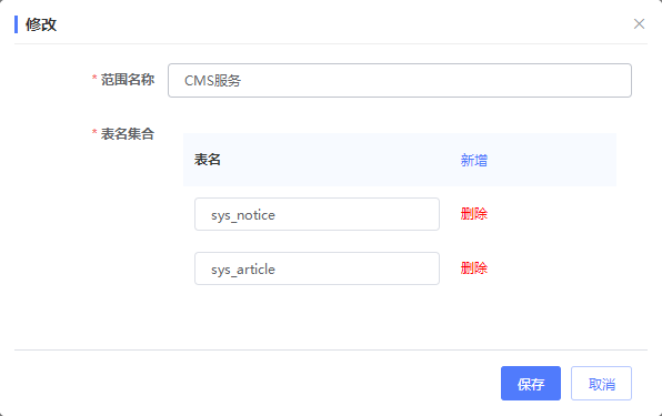 - 表名集合:需要查询的业务表名,业务表中必须要包含组织机构字段和用户字段