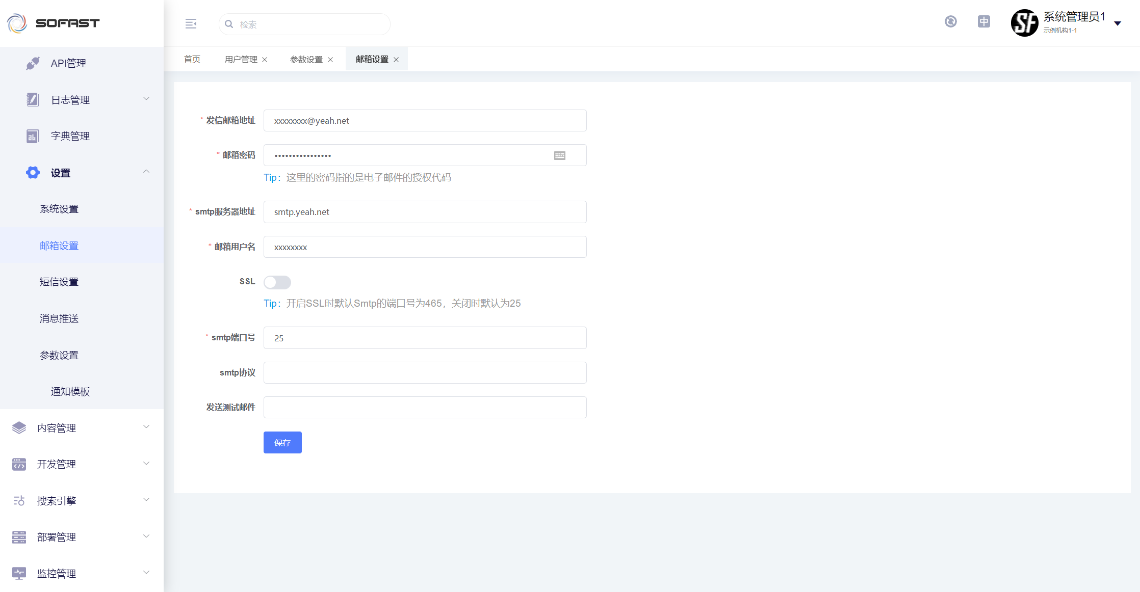 用于需要发送邮件时,设置邮箱服务器相关配置